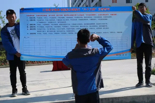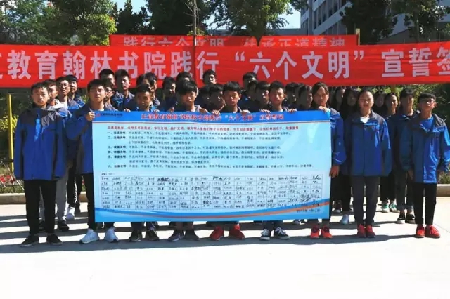 為了營(yíng)造良好的學(xué)習(xí)氛圍,提高學(xué)生素質(zhì),培養(yǎng)令家長(zhǎng)和社會(huì)滿意的人才,根據(jù)2017年秋季學(xué)期政教處工作計(jì)劃,結(jié)合“六個(gè)文明”活動(dòng)實(shí)施方案,2017年9月16日9點(diǎn)50分,昭通正道教育翰林書(shū)院校本部全體師生在足球場(chǎng)隆重集會(huì),舉行踐行“六個(gè)文明”宣誓簽字儀式。伴隨著雄壯的國(guó)歌聲,拉開(kāi)了活動(dòng)的序幕,接著高二9班楊雍同學(xué),帶領(lǐng)全校師生在莊嚴(yán)的國(guó)旗下宣誓,老師、同學(xué)們舉起右手,嚴(yán)肅認(rèn)真,鄭重承諾,彰顯出正道人志存高遠(yuǎn),腳踏實(shí)地,永創(chuàng)一流,自強(qiáng)不息的精神。