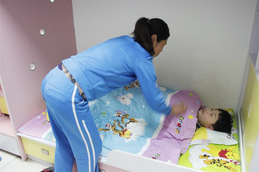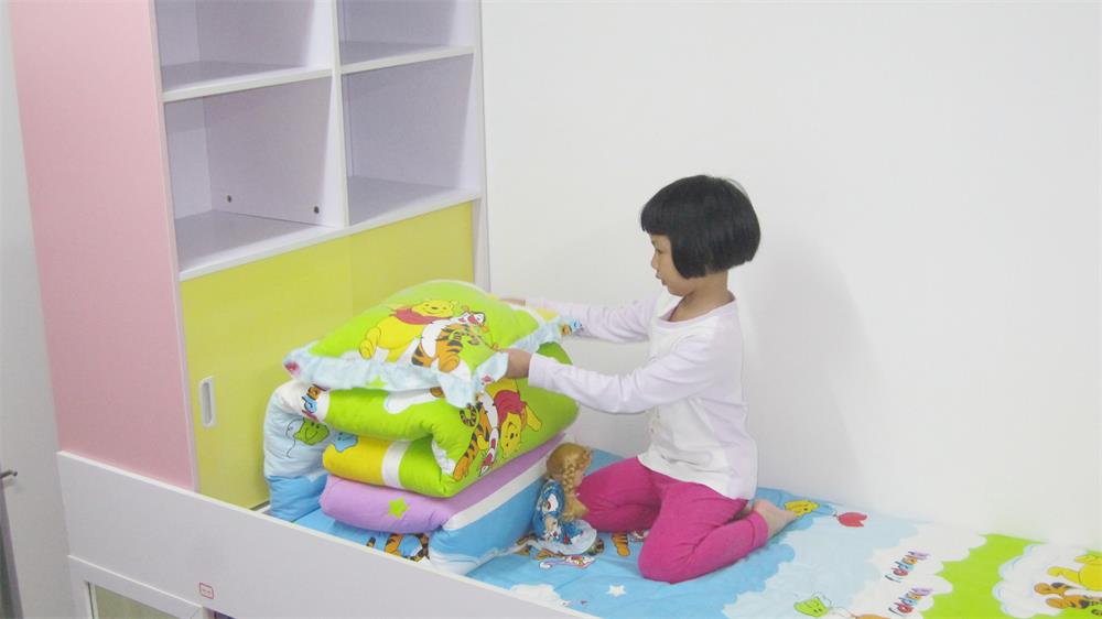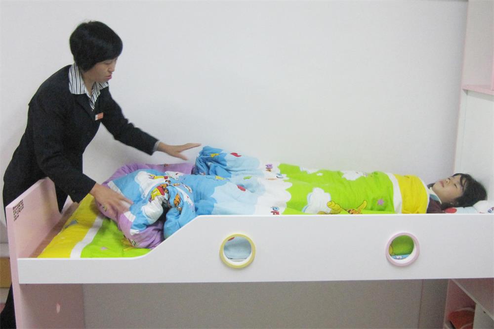 學(xué)生公寓溫馨舒適,生活老師陪同睡覺,給低年級(jí)學(xué)生洗頭、洗衣服。
