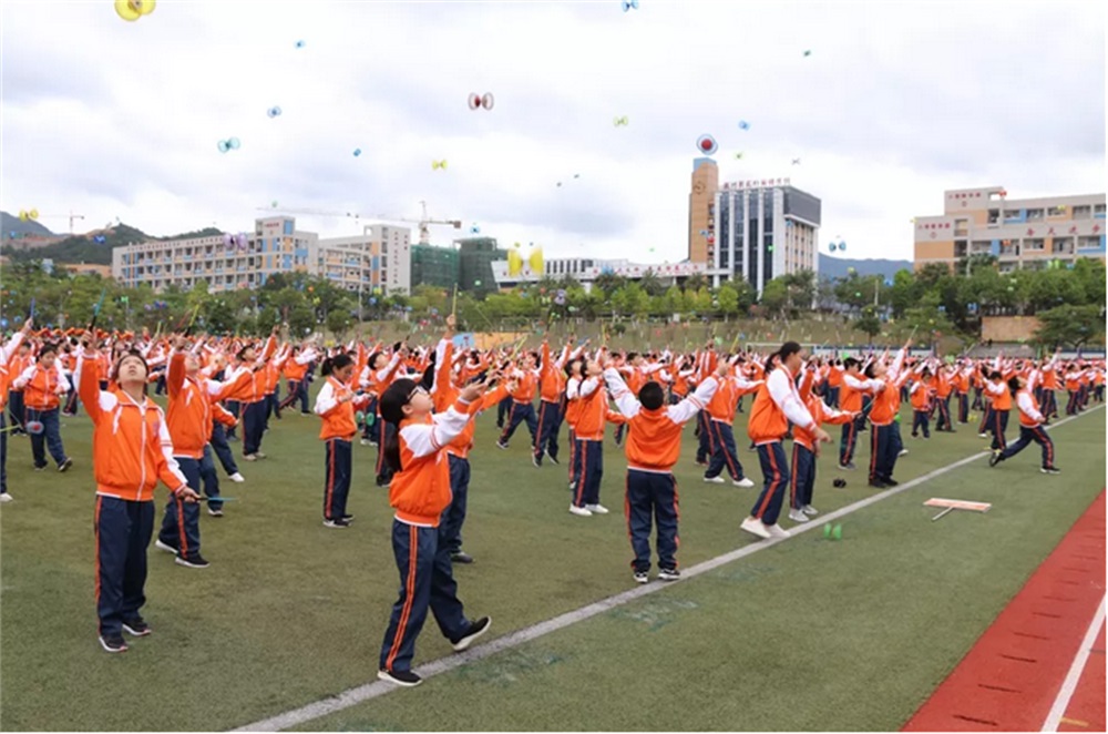 人人參加晨練、晚跑、趣味運(yùn)動(dòng)會(huì)、田徑運(yùn)動(dòng)會(huì),每個(gè)學(xué)生都能掌握兩樣體育技能。