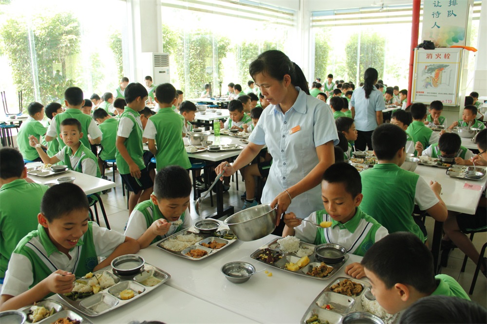 漢回食堂包餐,避免相互攀比。低年級(jí)由老師陪餐,中高年級(jí)自助打餐。