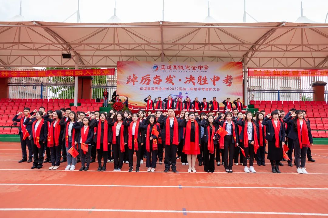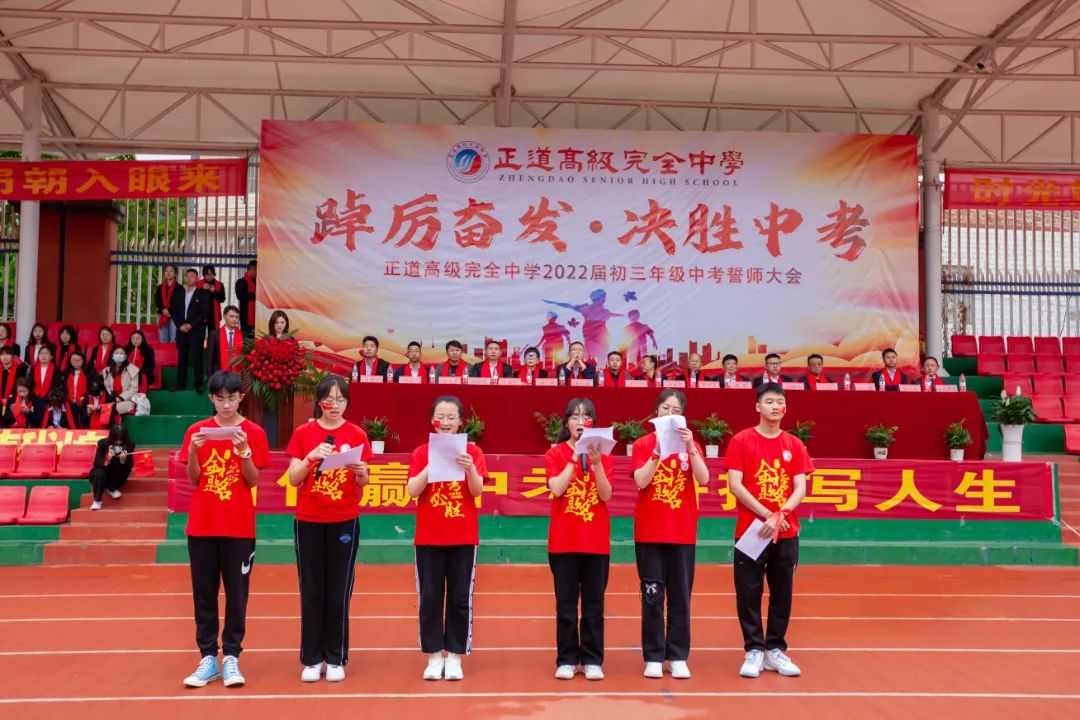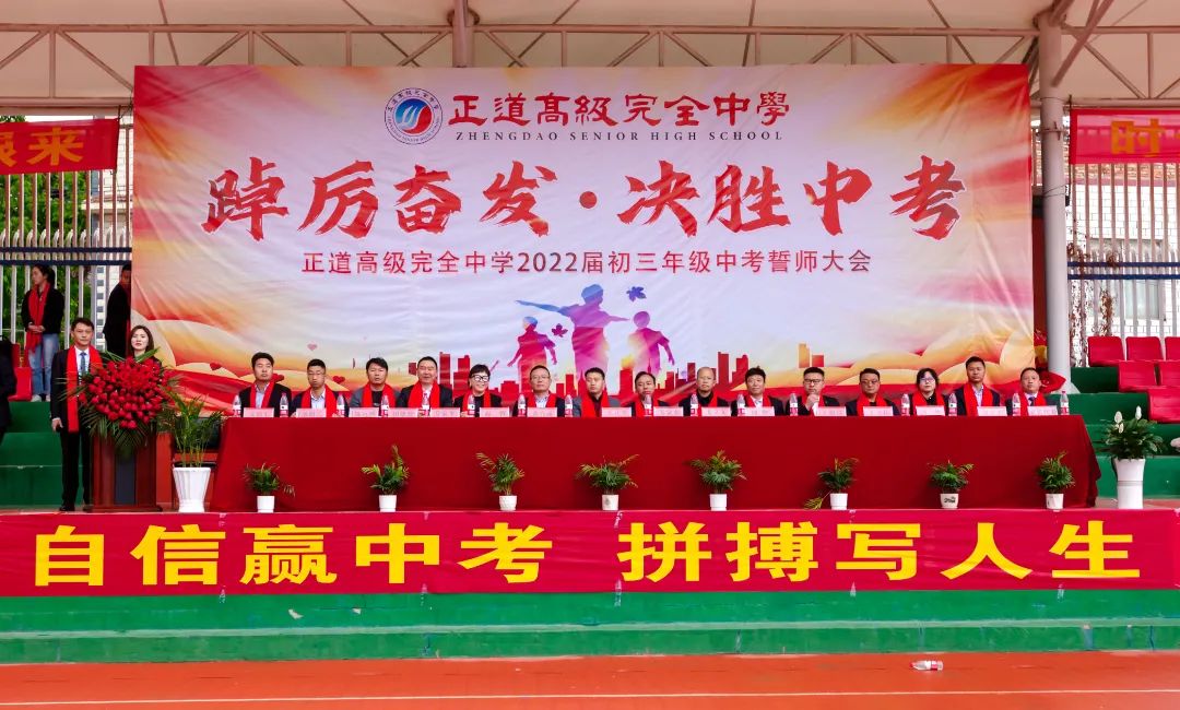 2022年5月9日上午8:30,正道高級完全中學(xué)2022年中考誓師大會揭開序幕,敲響迎戰(zhàn)的戰(zhàn)鼓,吹起沖刺的號角,為初三勇士壯行,為迎戰(zhàn)中考的學(xué)子助力、吶喊。出席活動(dòng)的有王立舉董事長、喬家東副董事長、董自成校長、趙蓉校長、戈立文書記,以及周智、王立兵、 喬家奎等副校長和全體初三師生,李成銀老師、方圓老師主持活動(dòng)。