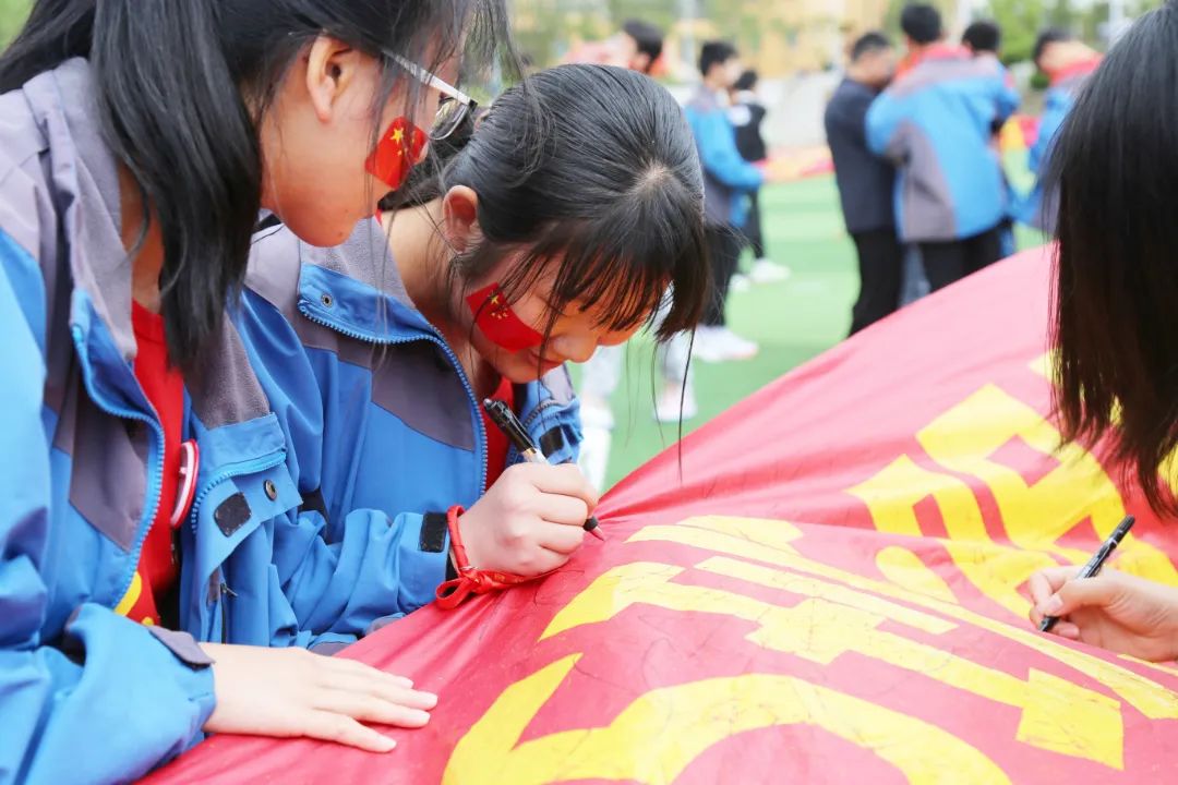 少年自有少年狂,涉昆侖,笑呂梁。鏗鏘的誓言,敲響了出征的戰(zhàn)鼓,揚(yáng)起了決戰(zhàn)的風(fēng)帆 ,我們要昔日如金,努力拼搏,我們要亮劍六月,勇摘共冠,奮戰(zhàn)37天,讓飛翔的夢展開理想的翅膀,讓奮進(jìn)的風(fēng)帆駛向勝利的彼岸。