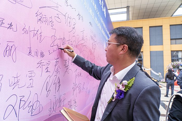 活動開始前,老師們在入場前佩戴美好寓意的胸花,并在主題簽名墻上鄭重地寫下自己的名字,以表堅守自身職業(yè)道德修養(yǎng)的決心,那一個個剛勁有力的名字,如同無聲的誓言,烙印在簽名墻上,也深深印刻在每一位老師的心底。